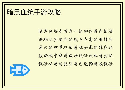 暗黑血统手游是一款动作角色扮演游戏,以其激烈的战斗、丰富的剧情和庞大的世界观而著称。如果你想在这款游戏中取得成功,这份攻略将为你提供必要的指引。 角色选择 游戏提供四个可玩角色,每个角色都有独特的技能...